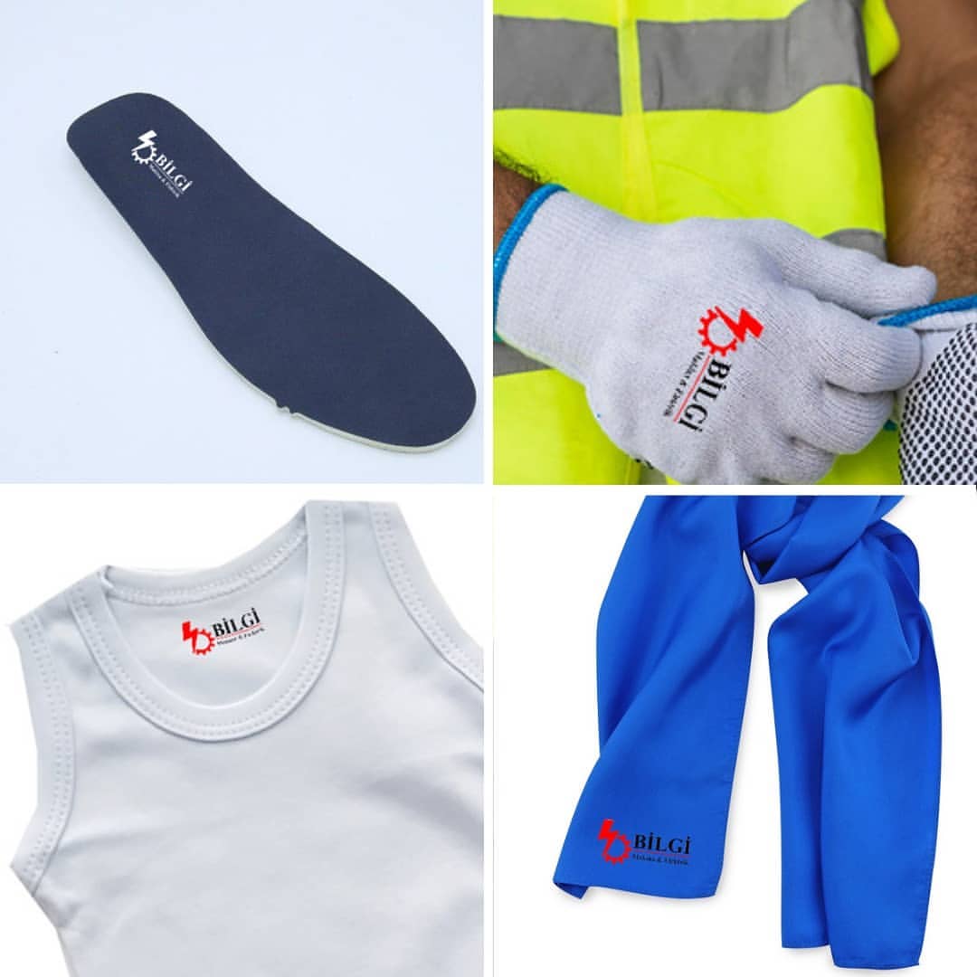 Tekstil Ürünleri Üzerine Tampon Baskı yapıyoruz. Nitril inşaat eldiveni, bebek giyim ürünleri vb. baskı işleri yapıyoruz.